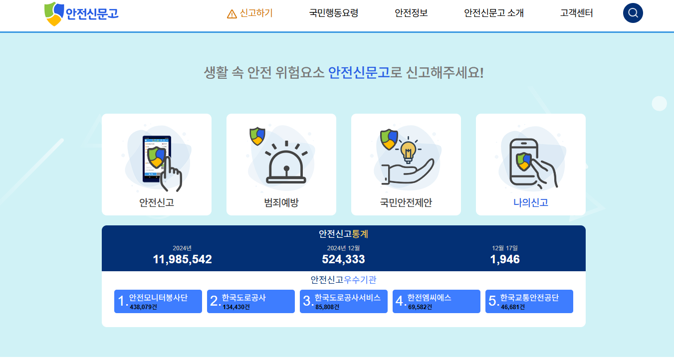 안전신고는 주로 재난이나 사고와 관련된 문제를 신고하는 것인데, 구체적인 방법은 다음과 같습니다.